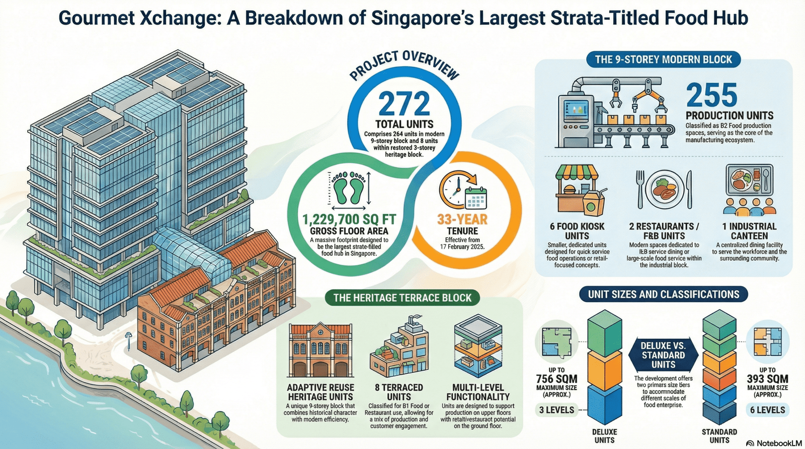 Gourmet XChange is Singapore’s largest strata-titled food development, comprising around 264 flexible units and integrating over 1,000 square meters of retail and amenity space
